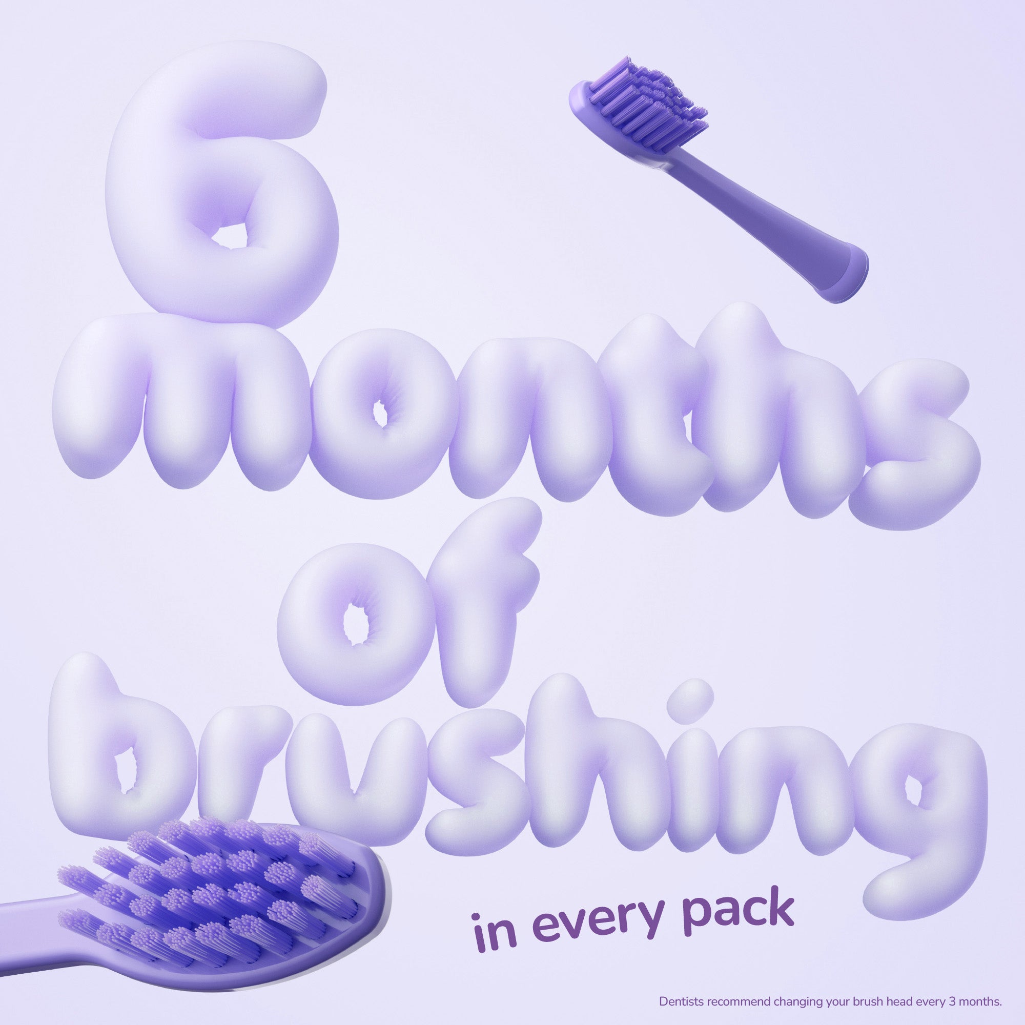 Each pack contains 2 brush heads that are soft, durable, and designed to last for up to 6 months of brushing.