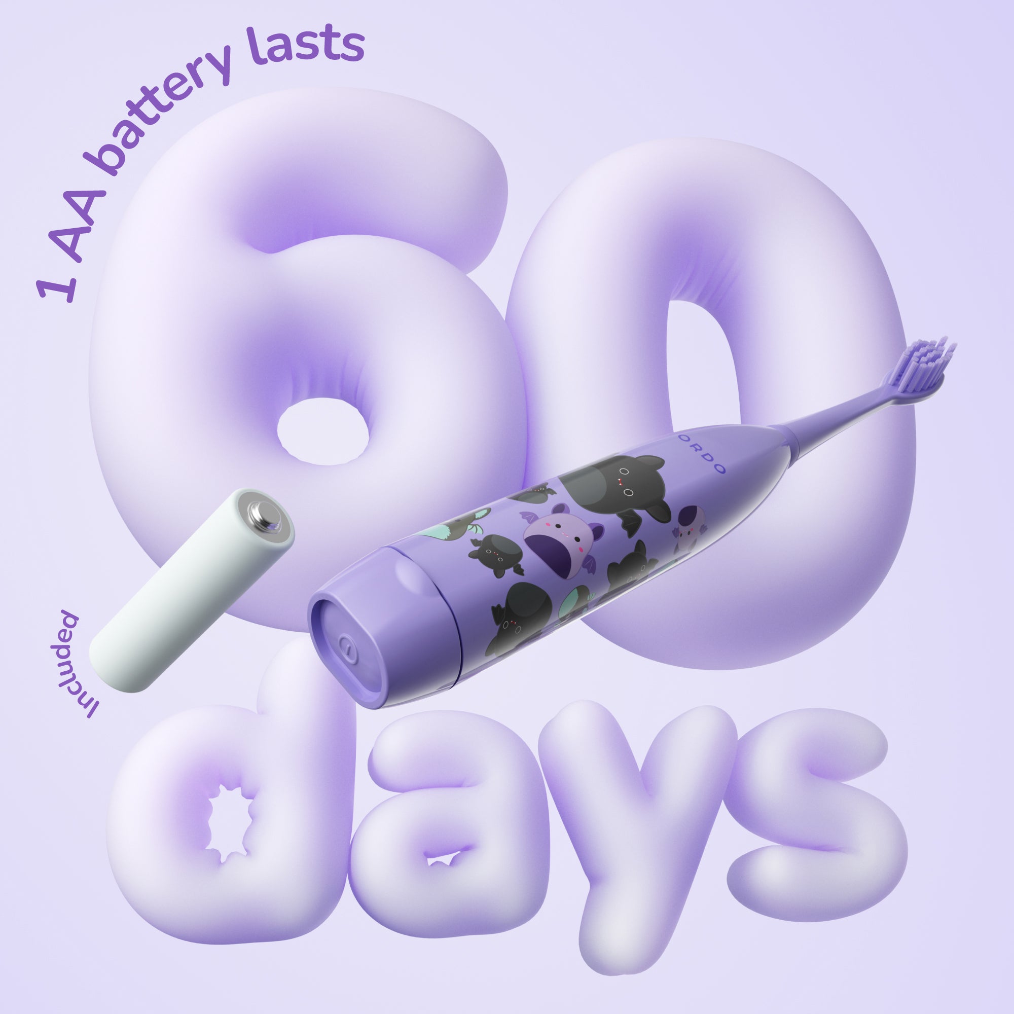 Perfect for small hands and, our battery brush delivers 18,000 pulses per minute and lasts 60 days on a single AA battery (included).