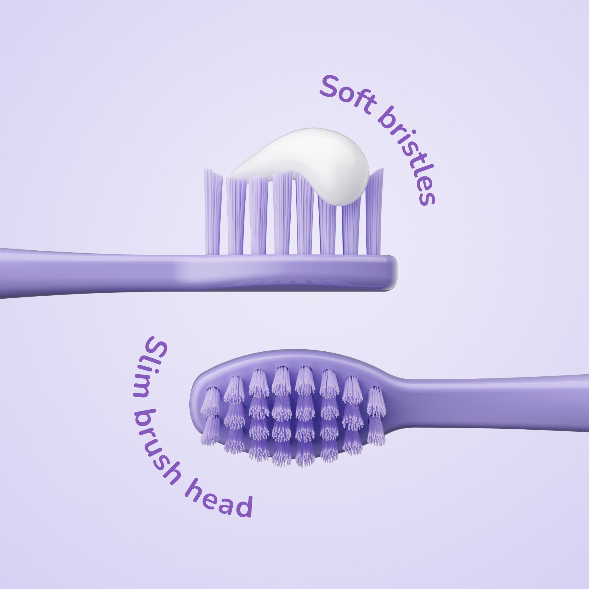 Soft bristles provide a gentle yet thorough clean, making sure teeth and gums are cared for, even with braces and dental work.